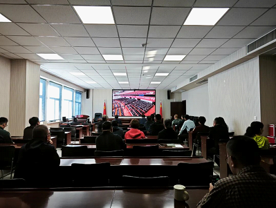 9月25日上午,博州自然资源局组织全局26名在家干部职工在会议室集中收看大会现场直播。观看结束后,干部职工心潮澎湃,倍感振奋。大家一致认为,新疆维吾尔自治区成立70年来,在党的坚强领导下,各族人民同心同德、砥砺前行,社会稳定,经济发展,民族团结,人民生活蒸蒸日上。作为自然资源系统的干部,身处这个伟大的时代,倍感荣幸,也深知责任重大。大家表示,要将庆祝自治区成立70周年激发的爱国热情和民族自豪感,转化为推动自然资源事业高质量发展的强大动力,为谱写高质量发展新篇章贡献智慧和力量。