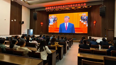 自治区地质勘查质量评价中心全体干部职工全程收看直播实况,掀起学习热潮。大家深切感到70年来自治区在经济发展、民族团结、民生改善等领域取得的辉煌成就,离不开党中央的坚强领导,更印证了科学评估、精准赋能对区域发展的重要支撑作用。接下来将把大会精神转化为履职实效,立足干部考评、项目评估、效能评价等核心职能,以更精准的标准对接发展需求,以更科学的评估方法服务决策部署,用专业力量助力高质量发展,为自治区巩固发展成果、推进民族团结进步事业贡献智慧与担当。