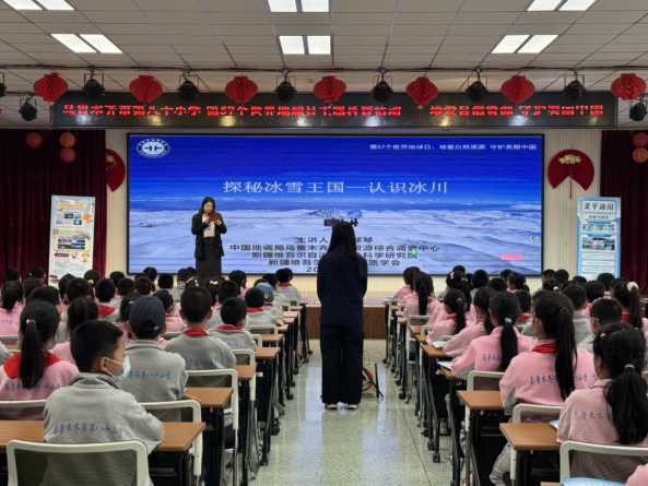 4月17日,在第57个世界地球日来临之际,自治区地质学会联合中国地质调查局乌鲁木齐自然资源综合调查中心、自治区测绘科学研究院等多家单位走进乌鲁木齐市第八十小学,开展主题为“珍爱自然资源 守护美丽中国”的科普宣传进校园活动。活动创新采用“讲座+互动+展览+直播”模式,为师生们带来了一场别开生面、干货满满的地球科学科普盛宴,让环保理念浸润童心。