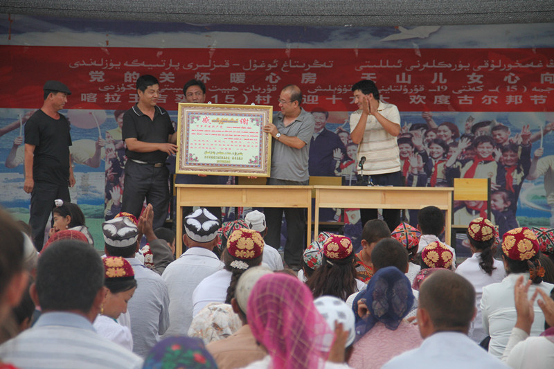在以“党的关怀暖心房 天山儿女心向党”为主题举办联谊活动上,工作队与村民们一起载歌载舞,表达着对党的感恩之情,共同迎接十九大,欢度古尔邦节。