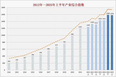 11月6日,中国卫星导航定位协会发布《2025中国北斗产业发展指数报告》(以下简称“报告”)。报告显示,截至2025年上半年,北斗产业综合指数已达1579点,同比提升了10.34%,与2020年相比,增幅超过60%,充分展现了“十四五”期间我国北斗产业呈现强劲增长态势。