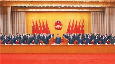 上午10时30分许,在欢快的乐曲声中,习近平等领导同志走上主席台,全场响起长时间的热烈掌声。