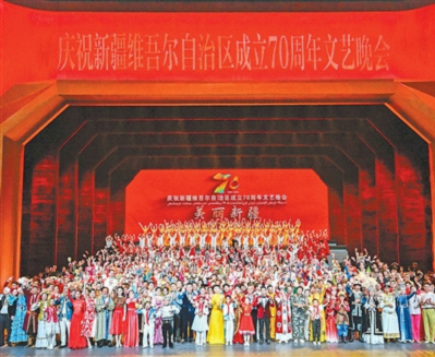 9月24日晚,庆祝新疆维吾尔自治区成立70周年文艺晚会《美丽新疆》在乌鲁木齐文化中心大剧院举行。