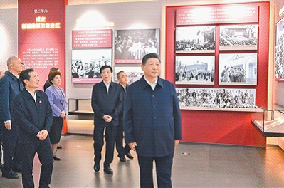9月24日上午,中共中央总书记、国家主席、中央军委主席习近平在乌鲁木齐文化中心展览馆参观新疆维吾尔自治区成立70周年主题成就展。