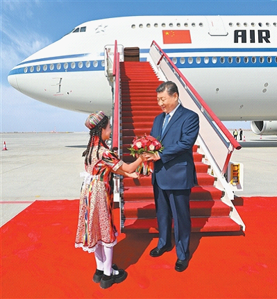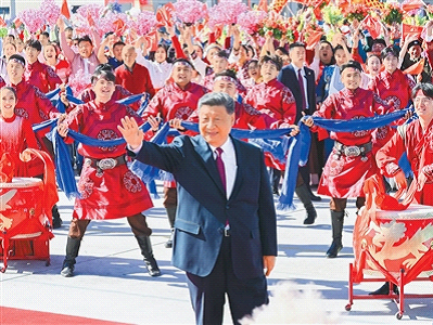 9月23日下午,中共中央总书记、国家主席、中央军委主席习近平率中央代表团乘专机抵达乌鲁木齐,出席新疆维吾尔自治区成立70周年庆祝活动。习近平等在机场受到新疆各族群众的热烈欢迎。