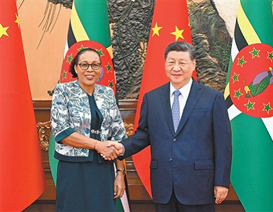 习近平指出,多米尼克是中国在加勒比地区的好朋友、好伙伴。建交20多年来,两国始终相互尊重、平等相待,政治互信不断巩固,各领域交流合作蓬勃开展,人民友谊日益深厚,树立了不同社会制度、不同大小国家间友好合作的典范。中方愿同多方一道,推动两国关系迈向更高水平,更好造福两国人民。