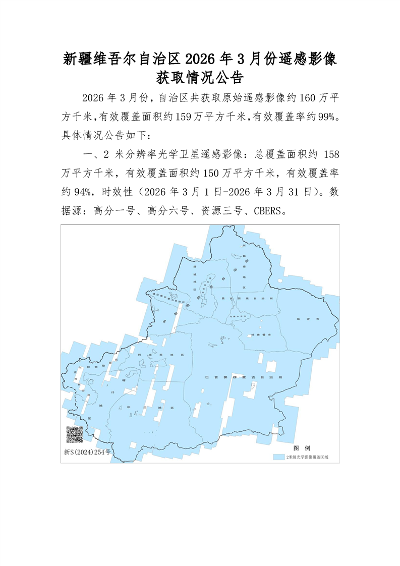 新疆维吾尔自治区2026年3月份遥感影像获取情况公告