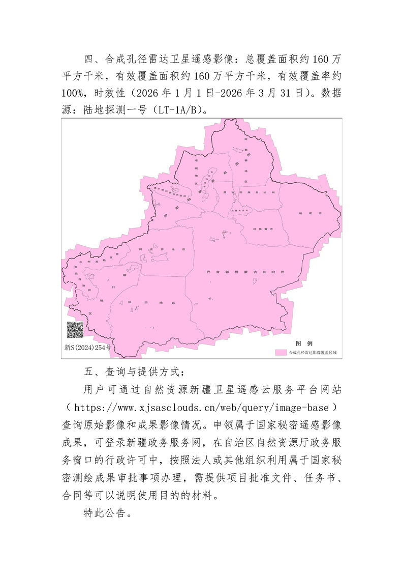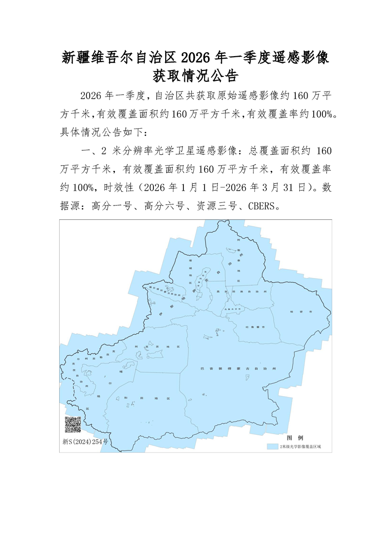 新疆维吾尔自治区2026年一季度遥感影像获取情况公告