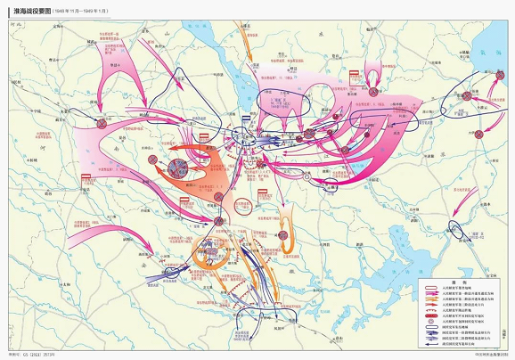 中国地图出版集团编制的《中国共产党100年地图集》即将出版,我们精选了一批珍贵的地图资料,开设《地图上的党史》专栏,带您回顾党的百年征程。今天,发布第三十八期《淮海战役要图》。