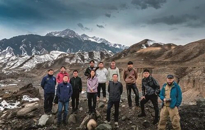 王尧(左五女士)与同事在天山北坡玛纳斯河流域调研。