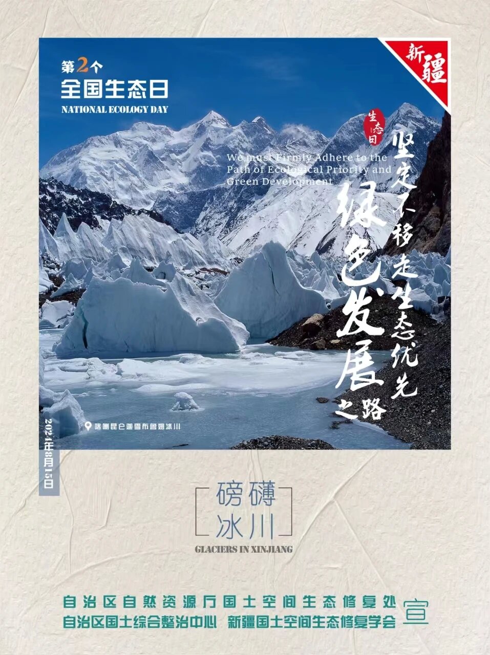 在新疆1号冰川 托木尔冰川 喀纳斯冰川闪耀着晶莹的光芒,给人