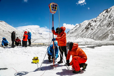 这次时隔30年的珠峰高程测量,创下了多项纪录:第一次将现代大地测量技术与经典大地测量技术等多种技术集中展现在珠峰地区;第一次获得了珠峰峰顶长时间、高质量的 GPS观测数据;第一次使用雪深雷达探测仪取代人工插杆测量,精确测得峰顶冰雪深度……