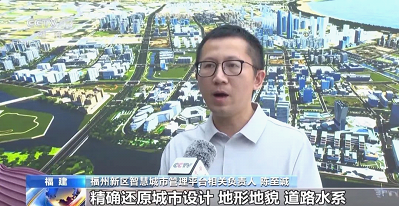 福州新区智慧城市管理平台相关负责人 陈至诚:打造了城市级的实景三维数据底板,精确地还原城市设计、地形地貌、道路水系,以及建筑布局,可以为新区的城市规划、建设和运行管理决策,提供一个更好的技术支持。