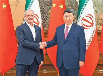 本报北京9月2日电 9月2日下午,国家主席习近平在北京人民大会堂会见来华出席2025年上海合作组织峰会和纪念中国人民抗日战争暨世界反法西斯战争胜利80周年活动的伊朗总统佩泽希齐扬。