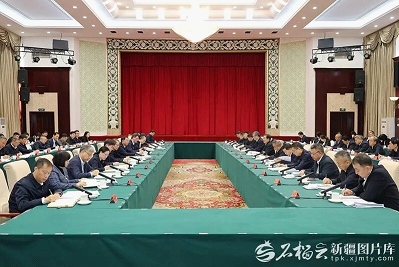 自治区党委副书记、自治区主席艾尔肯·吐尼亚孜主持。自治区党委副书记、兵团政委何忠友,自然资源部副部长庄少勤出席。