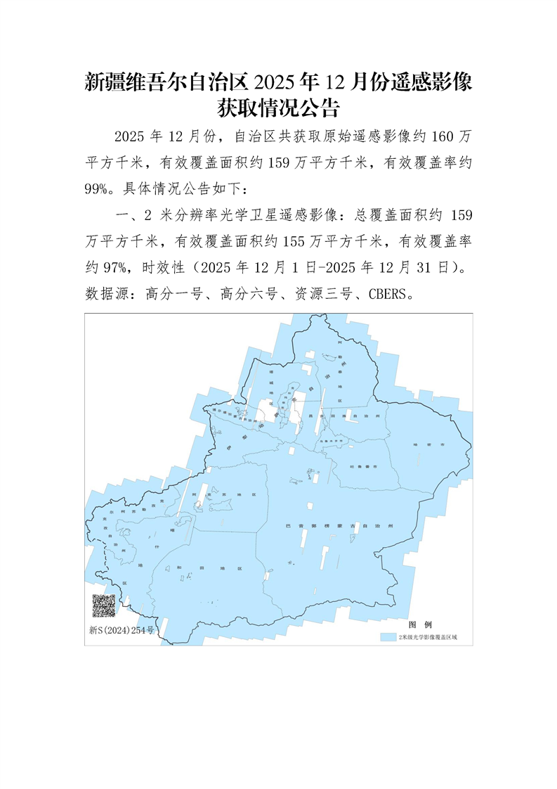 新疆维吾尔自治区12月份遥感影像获取情况公告
